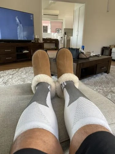 La compresión graduada impulsa la circulación desde los tobillos hasta arriba para que tus piernas se mantengan ligeras y sin dolo